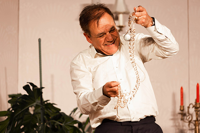 Az özvegy milliárdosné (Nyertes Zsuzsa) tetten éri a gátlástalan betörőt. (Straub Dezső) Vigyáznia kell, mert úgy tűnik a gonosztevő nem teljesen „100-as”!